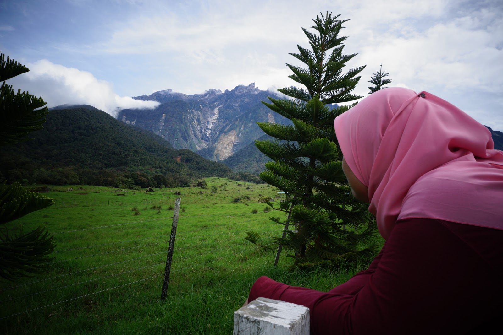 Dah siap bergambar dengan tudung yang ditiup angin kenchang, kami pun naik kereta dan pakcik pun bawak kereta meluncur laju ke Kiram's Village. Sebenarnya tempat ni macam homestay/lodge macam tu, tapi disebabkan pemandangannya yang indah, pakcik bawak kami ke situ.